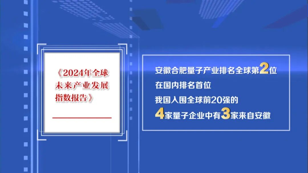安徽作為國內最早前瞻性系統布局量子科技研發與產業化的省份之一,在量子通信、量子計算、量子精密測量等領域創新成果不斷涌現,已集聚全國近1/3的量子科技企業,形成了全國最密集的量子產業生態圈。《2024年全球未來產業發展指數報告》顯示,安徽合肥量子產業排名全球第2位,在國內排名首位,我國入圍全球前20強的4家量子企業中有3家來自安徽。